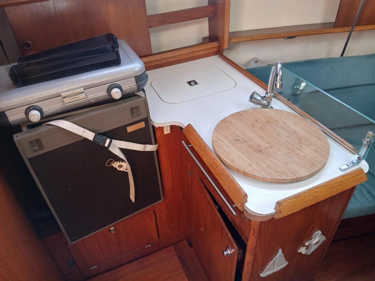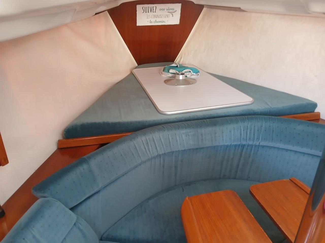 L’aménagement intérieur est conçu pour offrir un maximum de confort dans un espace compact. Le bateau dispose d’une cabine double à l’avant ainsi que d’un couchage double dans le carré. La cuisine est fonctionnelle avec une gazinière et un réfrigérateur, permettant de préparer facilement des repas lors des sorties en mer. Le carré central offre un espace convivial pour partager les moments de vie à bord.