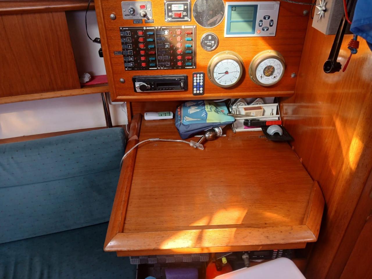 Côté navigation, le bateau est bien équipé avec GPS traceur, sondeur, VHF, centrale de navigation et pilote automatique. Ces équipements permettent d’envisager des navigations en toute sérénité.