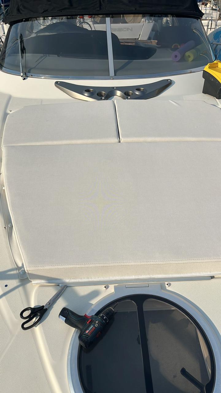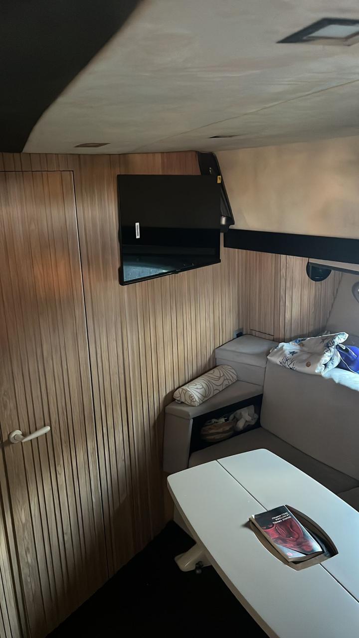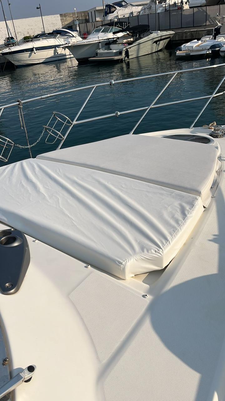 L’espace de vie extérieur est spacieux et convivial, avec un grand cockpit permettant d’accueillir plusieurs personnes. Les bains de soleil et la plateforme de bain facilitent la détente et les activités nautiques. Les coussins ont été récemment remplacés, apportant un confort supplémentaire et un aspect esthétique très soigné.