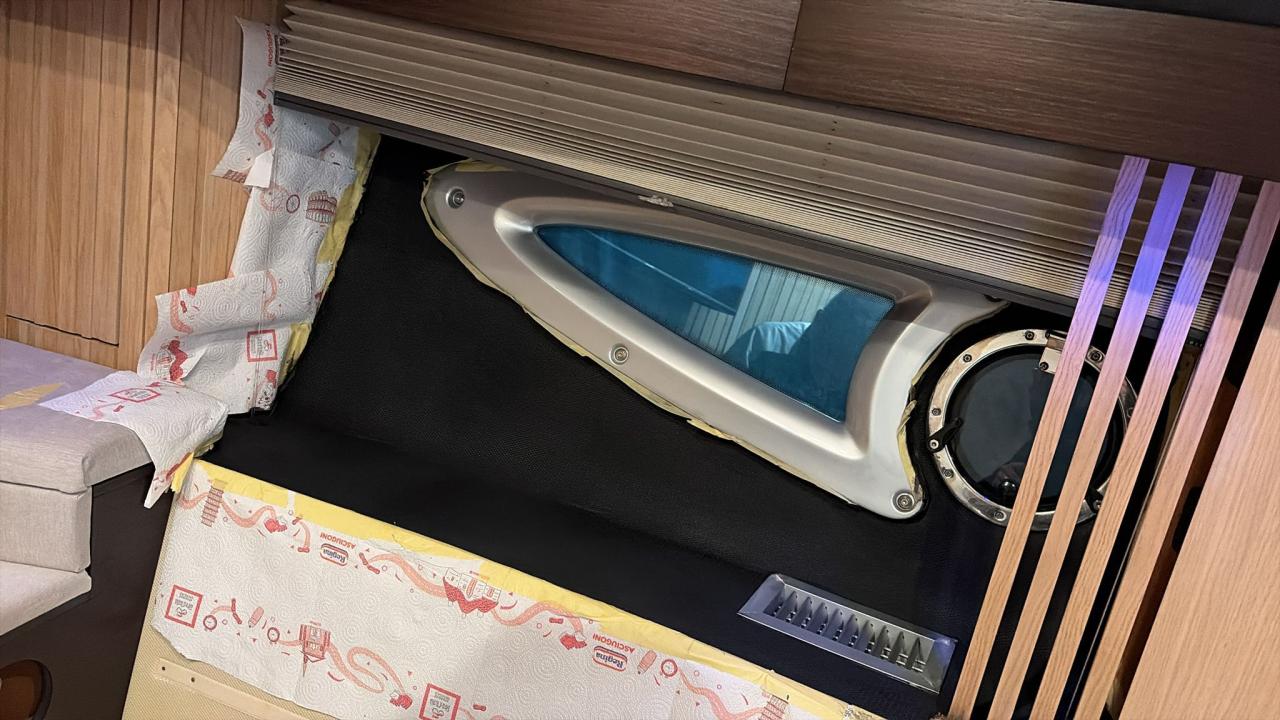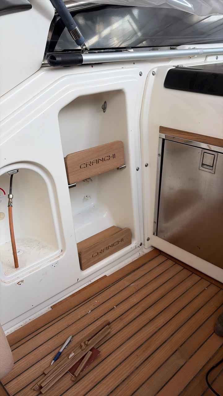 Le bateau est également équipé d’une climatisation de 12 000 BTU, assurant un confort optimal à bord quelles que soient les conditions climatiques. La cuisine est particulièrement bien pensée avec des plaques à induction à l’intérieur comme à l’extérieur, ce qui est rare sur ce type d’unité.