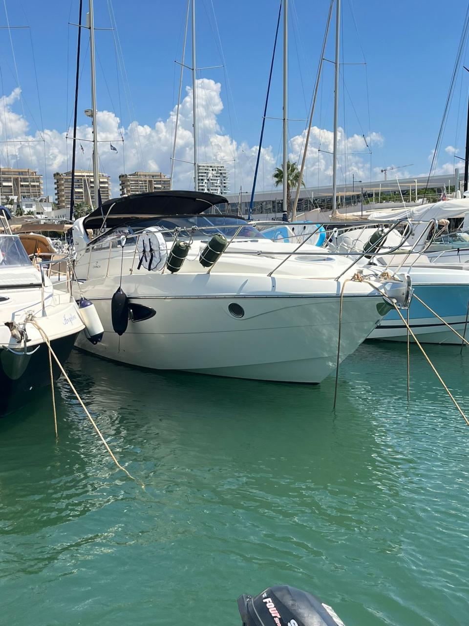 La coque en polyester bénéficie d’une carène planante performante, offrant une navigation confortable et sécurisante. Le bateau atteint une vitesse de croisière d’environ 25 nœuds et peut dépasser les 30 nœuds en vitesse maximale, ce qui le rend parfaitement adapté aux croisières côtières rapides.