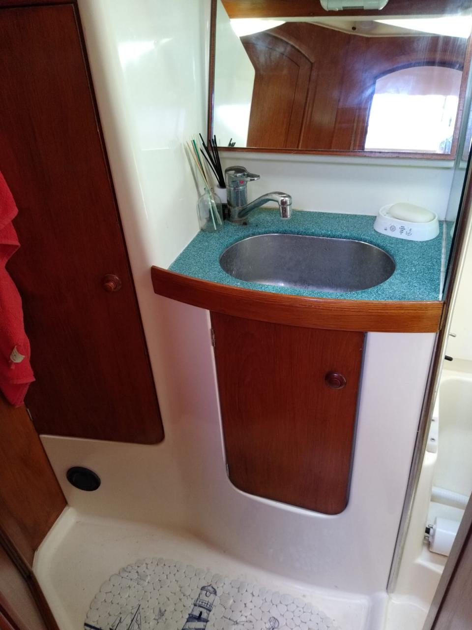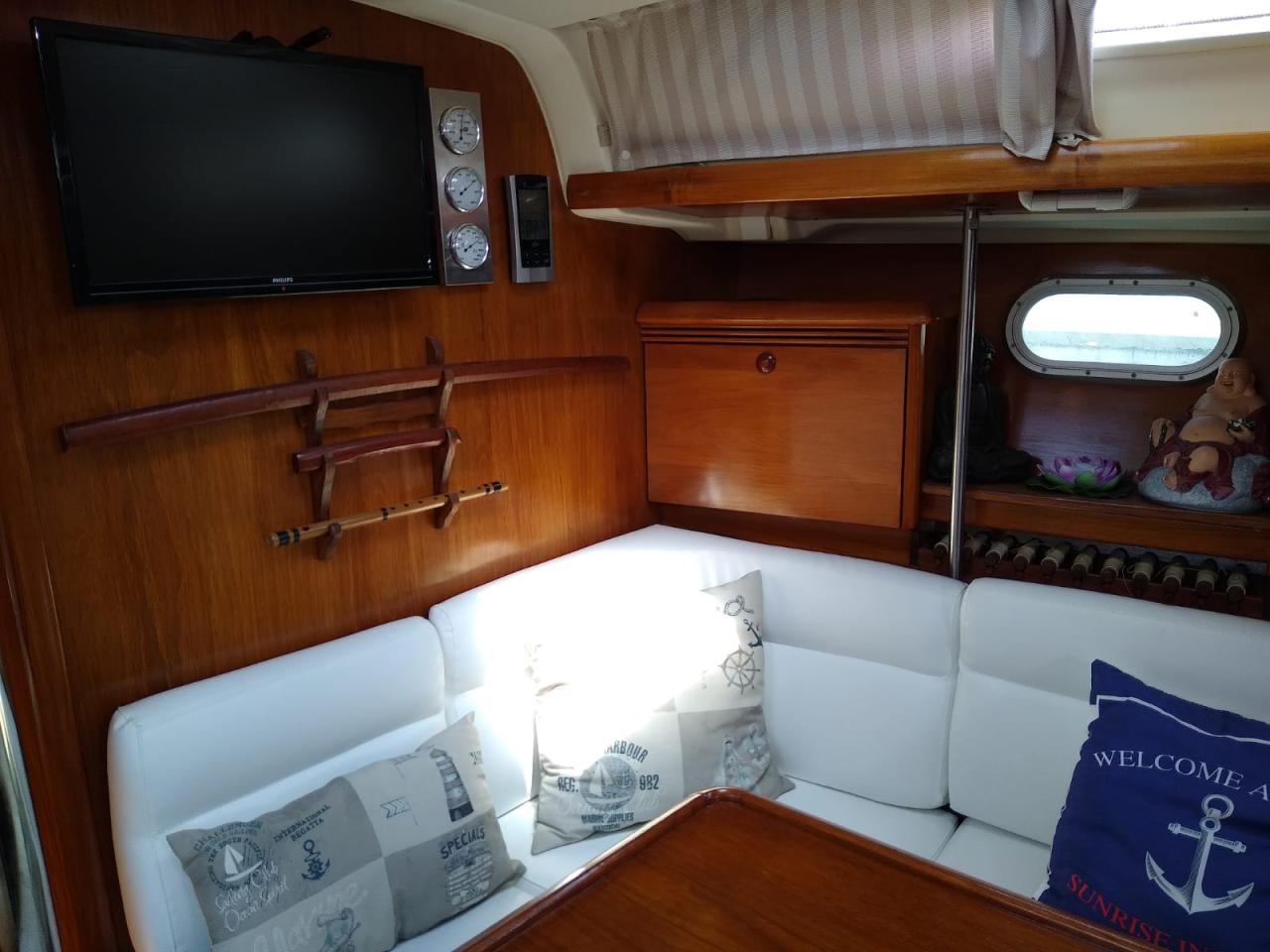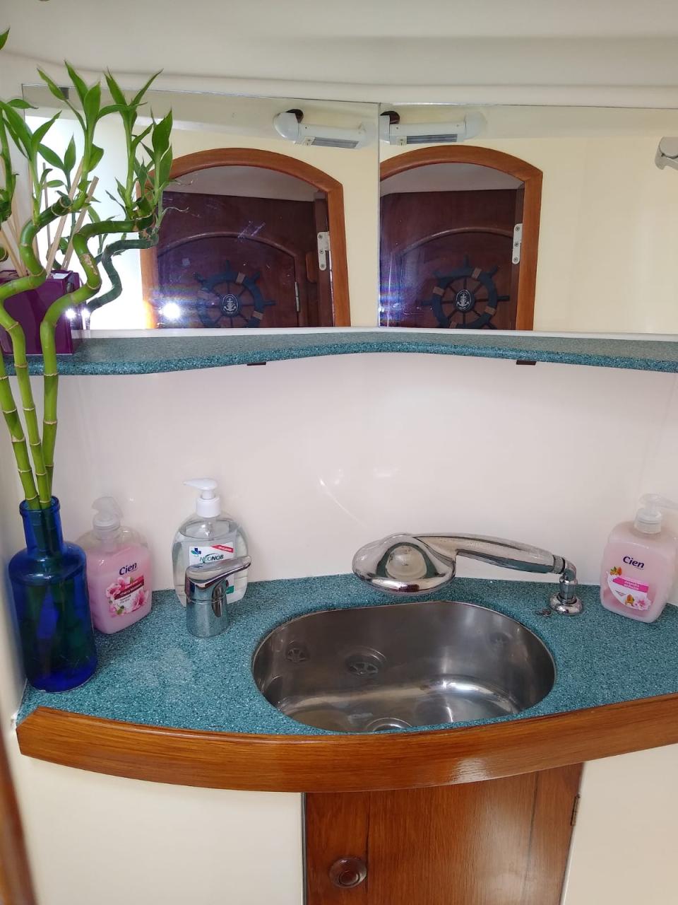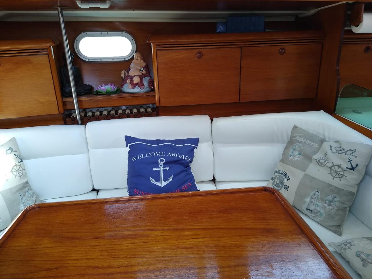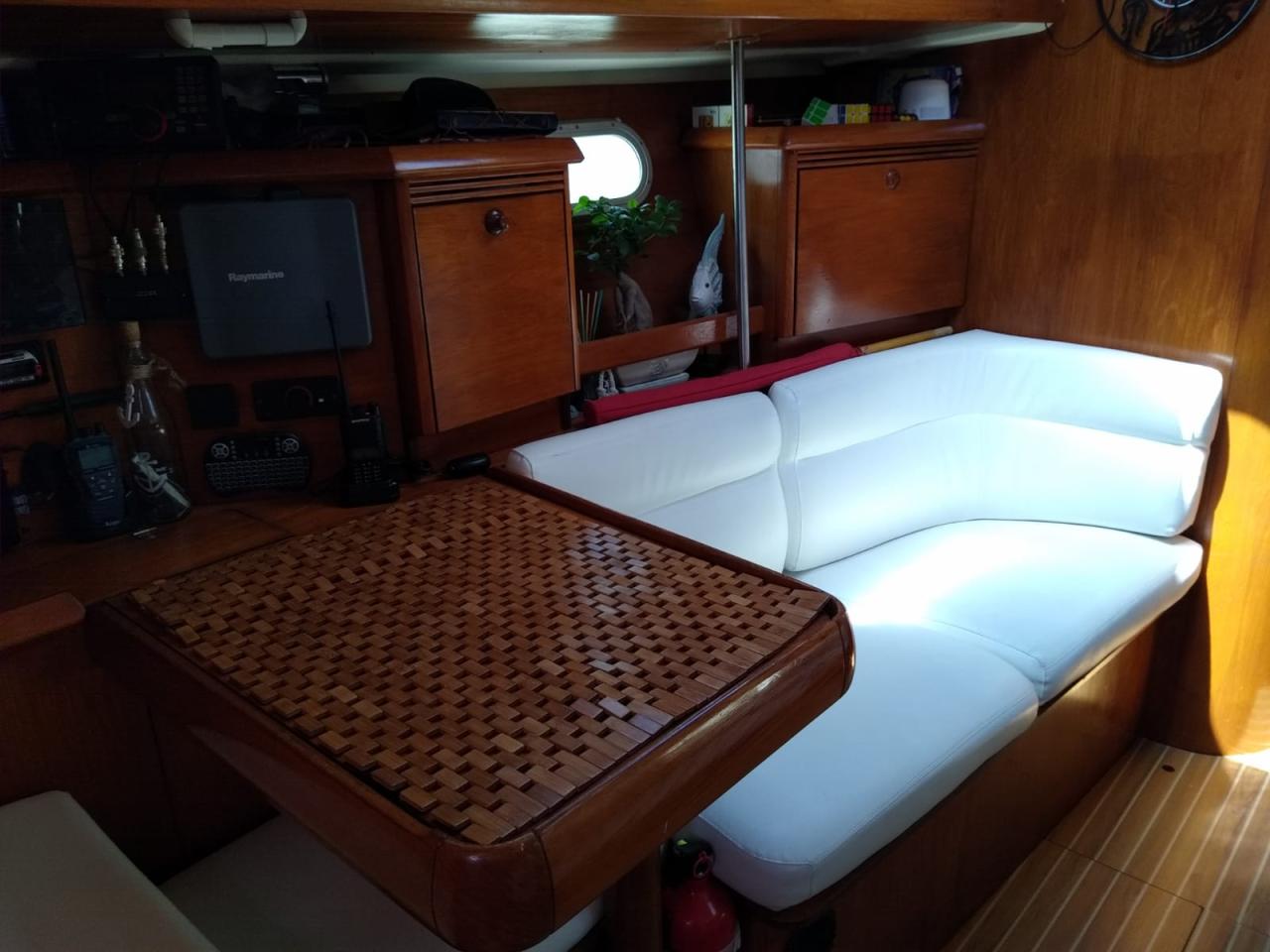 À bord, le confort est assuré par de beaux volumes, avec trois cabines, deux couchettes et deux salles de bain avec douche et chauffage. La cabine avant peut être transformée en suite en intégrant la cabine tribord (avec couchettes) et en ajoutant la salle de bain ; il suffit de changer les panneaux.