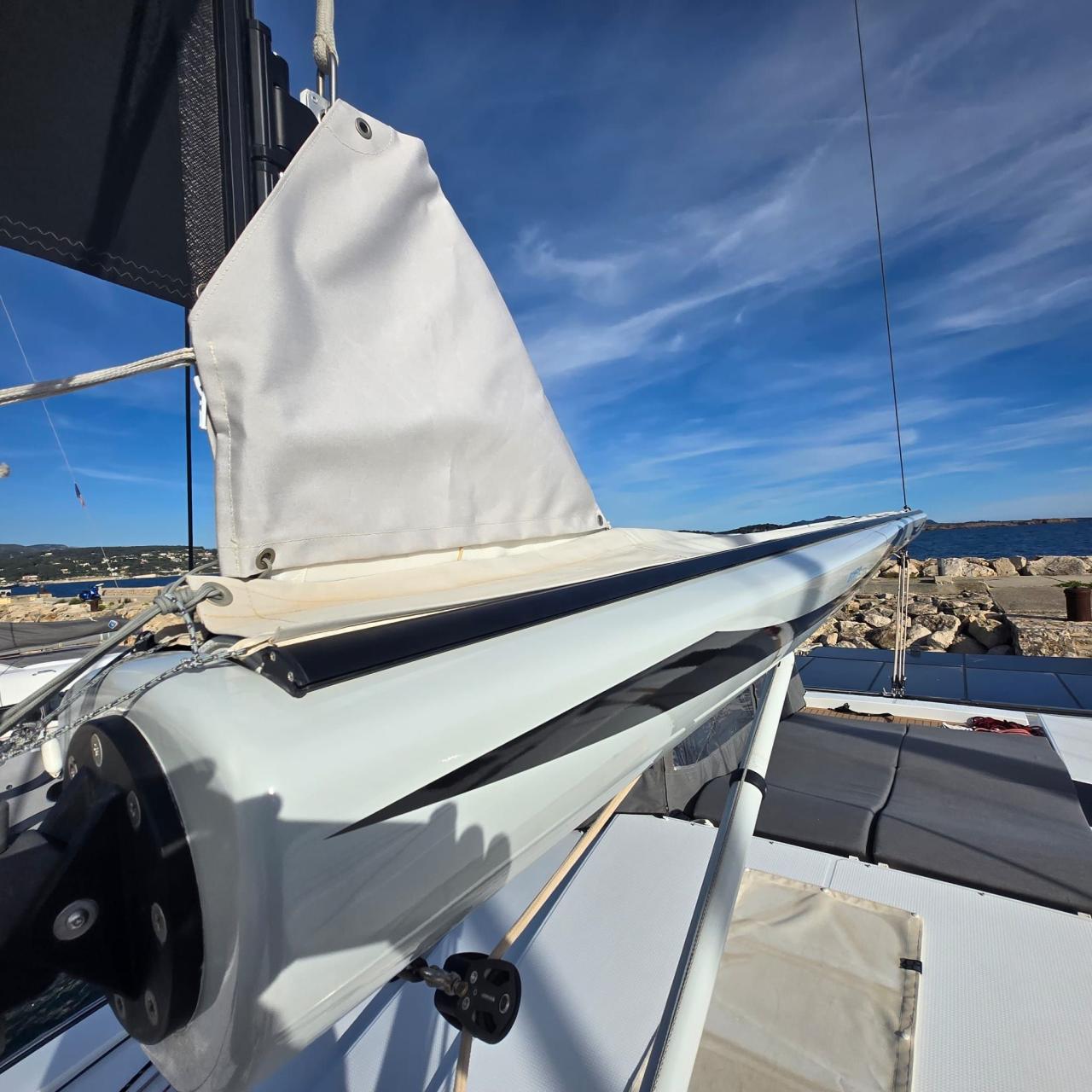 Baume à enrouleur Mainfurl (2024) / Winchs électriques / Grande voile et génois en parfait état / Guindeau électrique, équipement de mouillage complet / Bossoirs pour annexe, davier renforcé