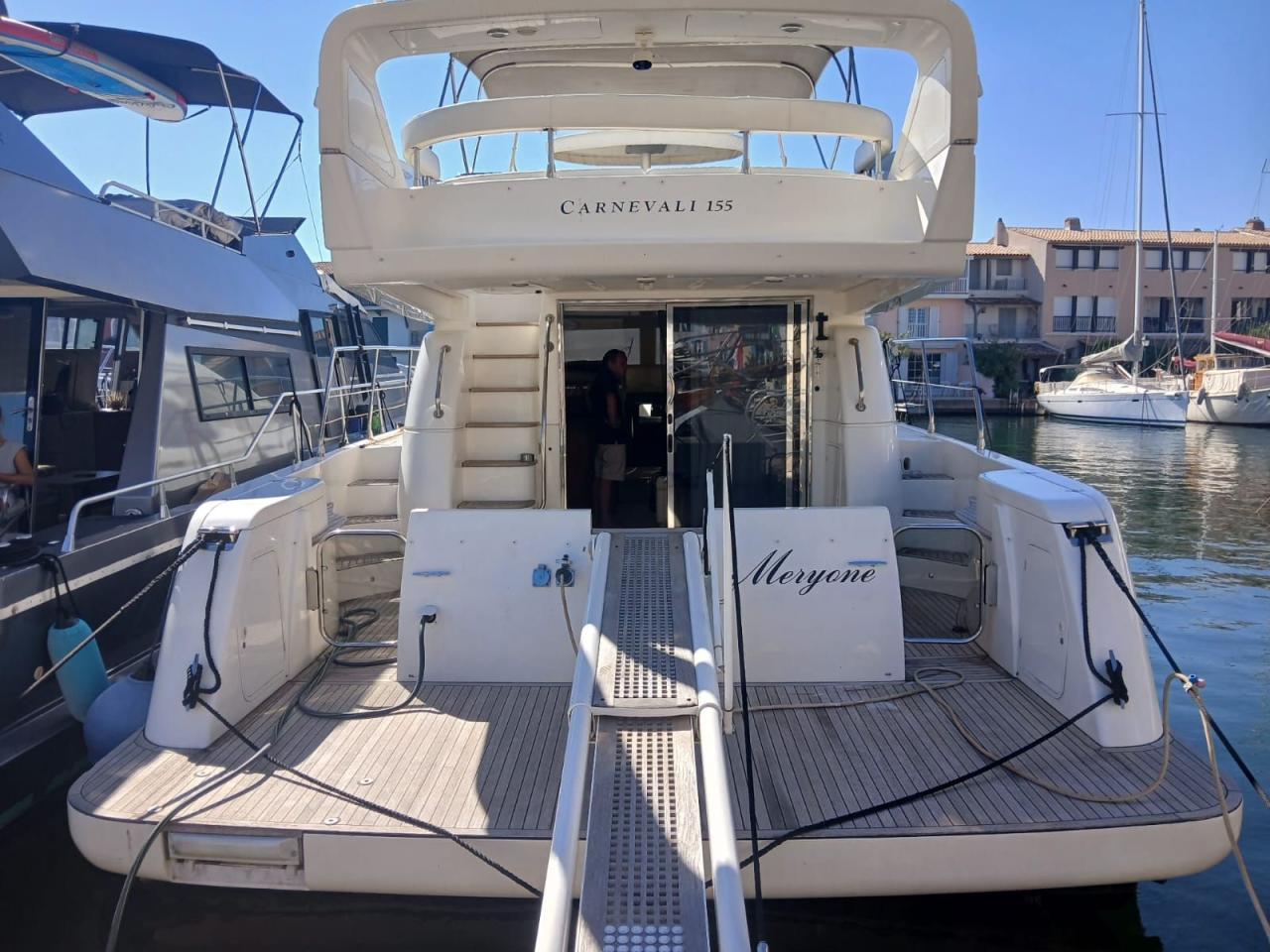 Le Carnevali 155 Fly est une vedette italienne haut de gamme de 15,5 m, réputée pour son confort, son design élégant et sa qualité de construction. Avec ses 3 cabines doubles et 2 salles de bain, il offre des volumes généreux, idéaux pour la croisière en famille ou entre amis.